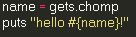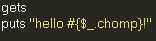 برای اینکه برنامه ورودی دریافت بکنه، می تونید از دستور gets استفاده کنید. این دستور مقدار ورودی رو با دستور انتقال به خط بعدی (همون"n\") بر می گردونه. علاوه بر این وقتی شما از این دستور استفاده می کنید، مقداری ورودی در متغییری به نام "_$" قرار داده میشه. برای اینکه دستور منتقل شدن به خط جدید رو حذف کنیم، از متود chomp استفاده می کنیم.